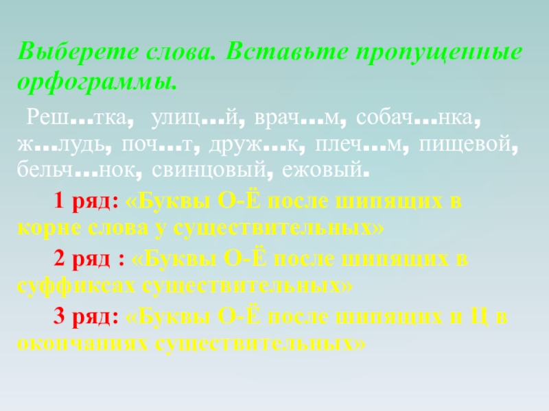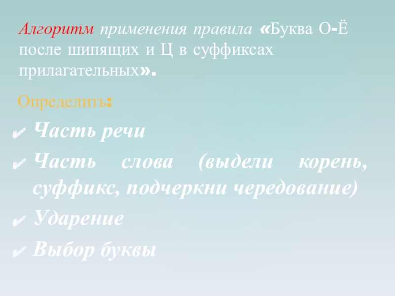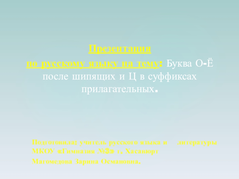 по русскому языку на тему: Буква О-Ё после шипящих и Ц в суффиксах прилагательных.