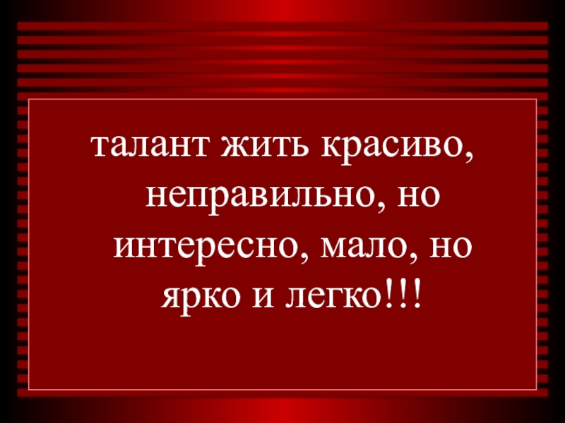 талант жить красиво, неправильно, но интересно, мало, но ярко и легко!!!