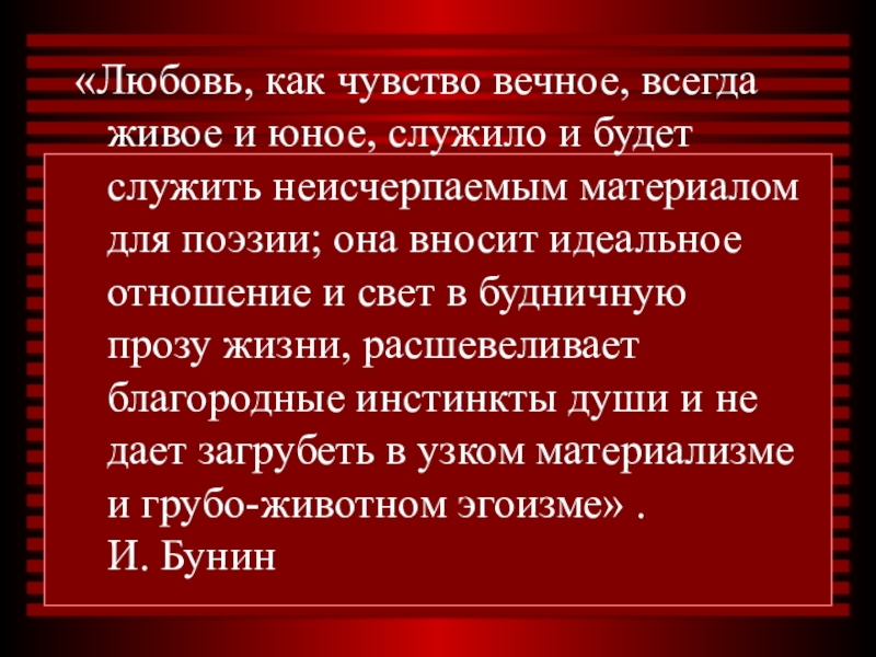 Слайд 25«Любовь, как чувство вечное, всегда живое и юное, служило и будет
