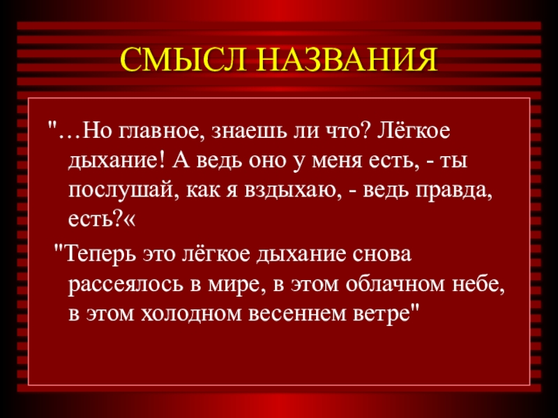 "…Но главное, знаешь ли что? Лёгкое дыхание! А ведь оно