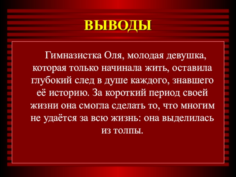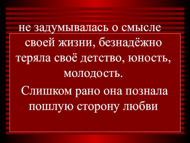 Слайд 17не задумывалась о смысле своей жизни, безнадёжно теряла своё детство, юность,