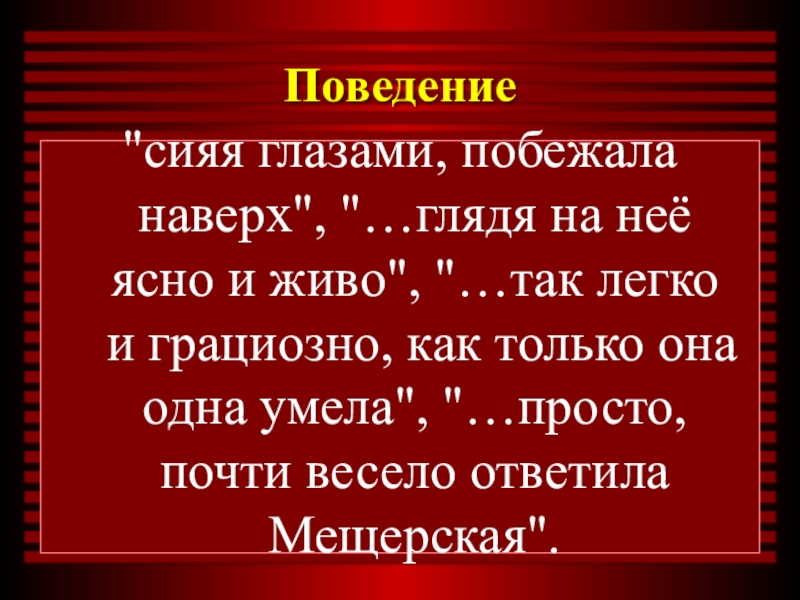 "…так легко и грациозно, как только она одна умела", "…просто, почти весело ответила Мещерская".