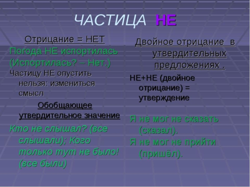 сказуемым, т. е. сказуемым, включающим частицу не или выраженным словами нельзя, нет.