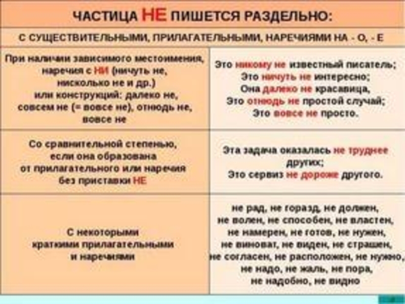 d) не?легко, не?лепо, не?решительный; не?что ? иное, как ошибка
