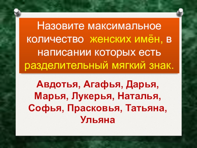 Авдотья, Агафья, Дарья, Марья, Лукерья, Наталья, Софья, Прасковья, Татьяна, Ульяна