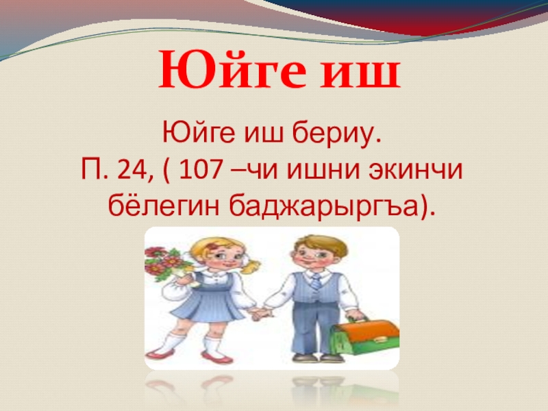 Юйге ишЮйге иш бериу.П. 24, ( 107 –чи ишни экинчи бёлегин баджарыргъа).