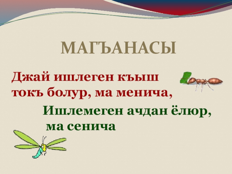 Слайд 5Ана тилим - баш байлыгъы халкъымы,