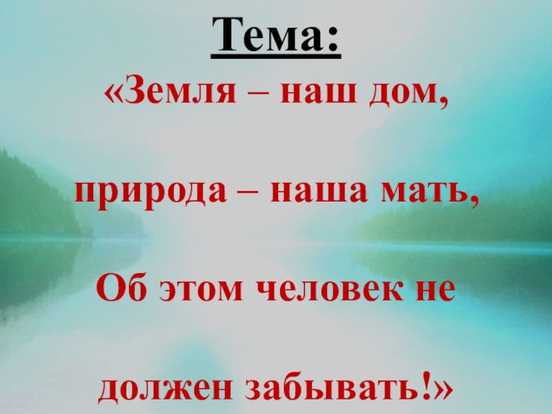 Тема: «Земля – наш дом, природа – наша мать, Об этом человек не должен забывать!»