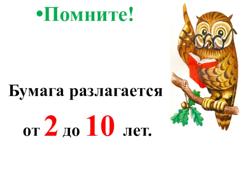 Помните!Бумага разлагается от 2 до 10 лет.