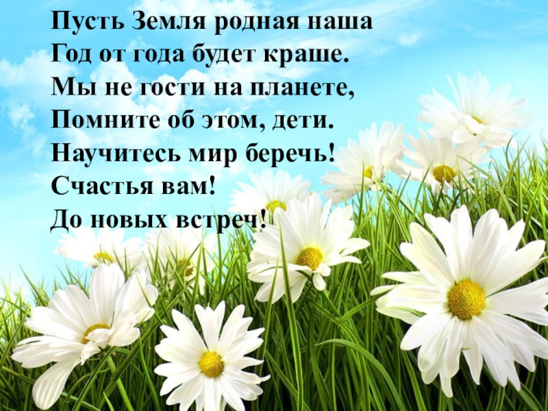 планете, Помните об этом, дети. Научитесь мир беречь! Счастья вам!