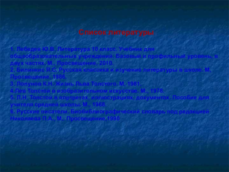 5. Л.Н. Толстой в портретах, иллюстрациях, документах. Пособие для учителя средней школы. М., 1968.