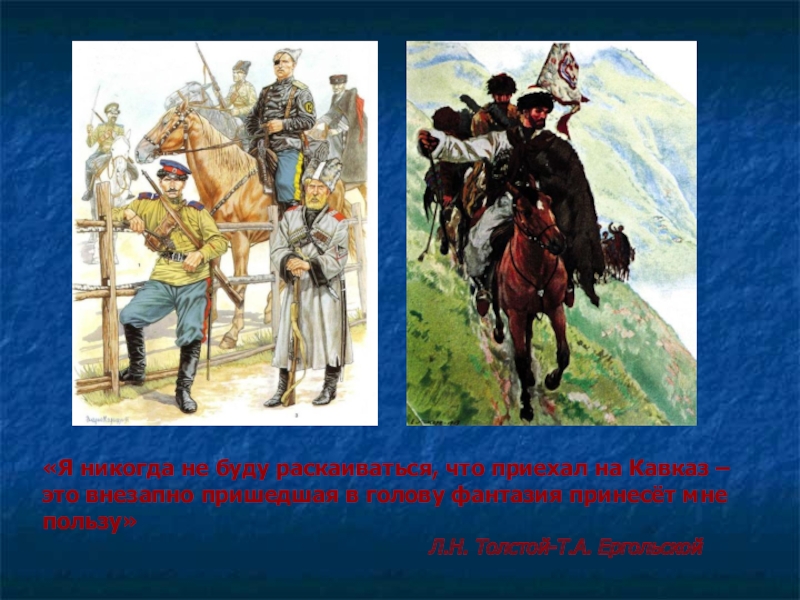Слайд 8«Я никогда не буду раскаиваться, что приехал на Кавказ – это