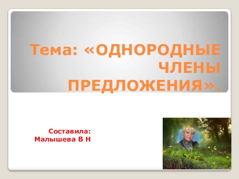 Тема: «ОДНОРОДНЫЕ ЧЛЕНЫ ПРЕДЛОЖЕНИЯ».Составила: Малышева В Н