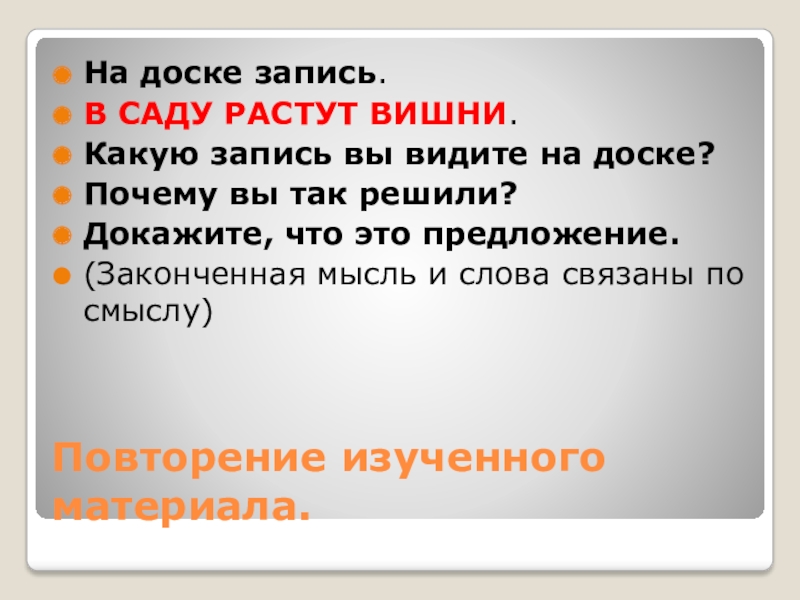 (Предложение).Все ли мы знаем о предложении?(Перечисляют что знают).