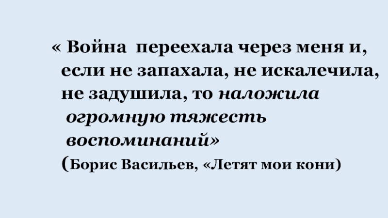и страдать» (Борис Васильев, «Летят мои кони»).
