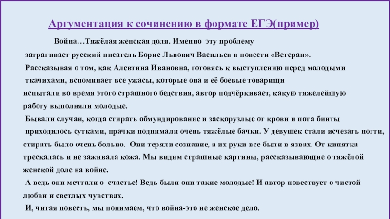 Аргументация к сочинению в формате ЕГЭ(пример)