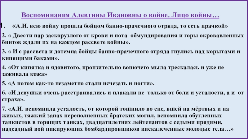 «А.И. всю войну прошла бойцом банно-прачечного отряда, то есть прачкой»