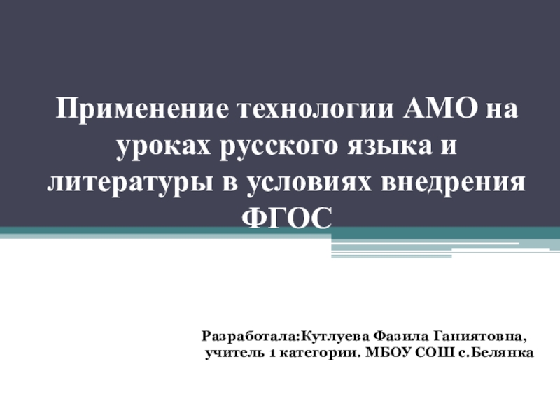 учитель 1 категории. МБОУ СОШ с.Белянка