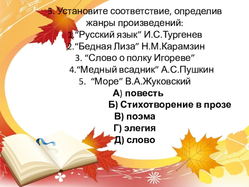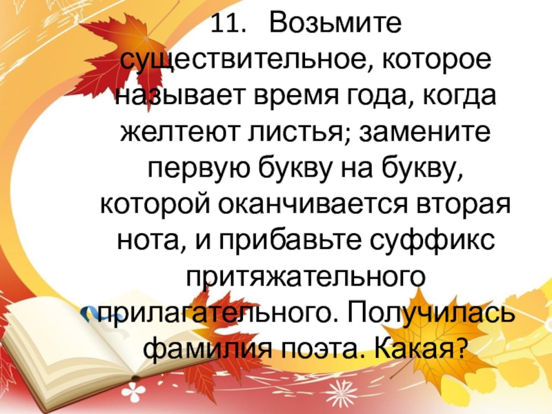 Слайд 1211. Возьмите существительное, которое называет время года, когда желтеют листья;