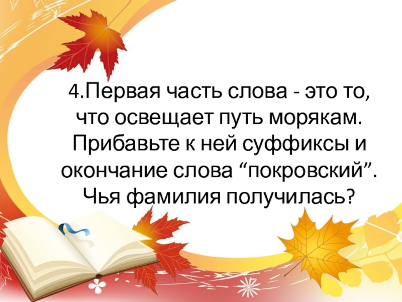 Слайд 54.Первая часть слова - это то, что освещает путь морякам. Прибавьте