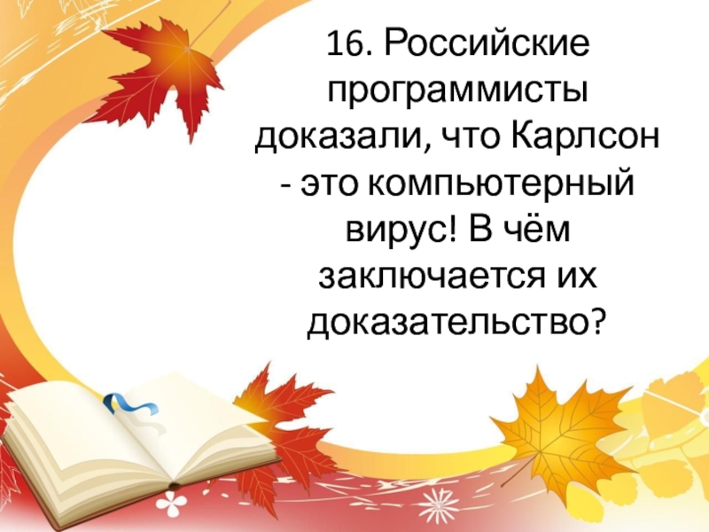 16. Российские программисты доказали, что Карлсон - это компьютерный вирус! В