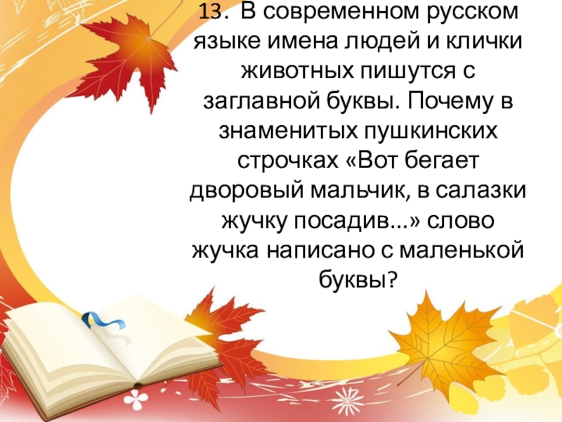 13. Жучка не имя собственное, а обозначение беспородной крестьянской собаки.