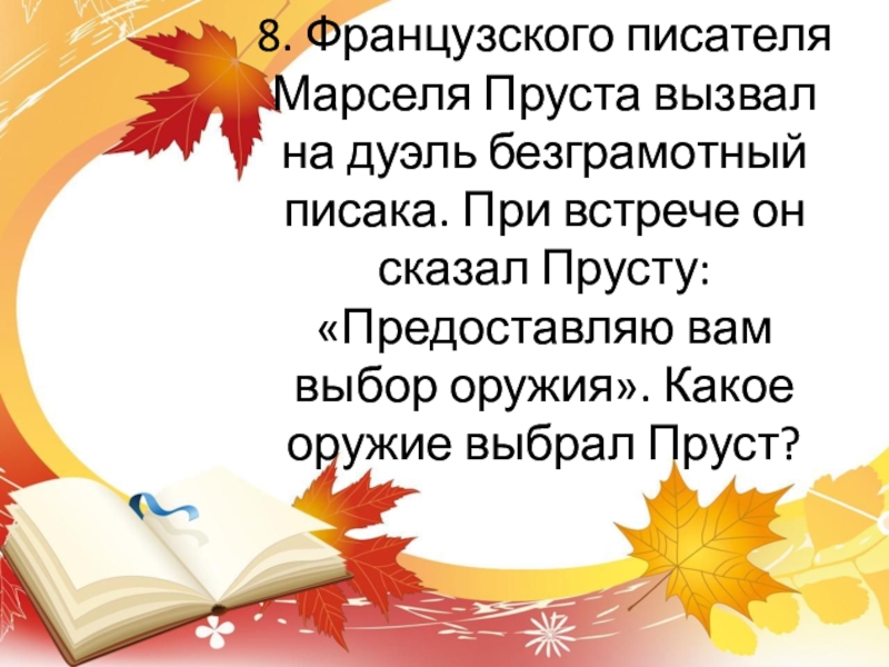 8. Пруст ответил: « Выбираю орфографию. Вы убиты!»