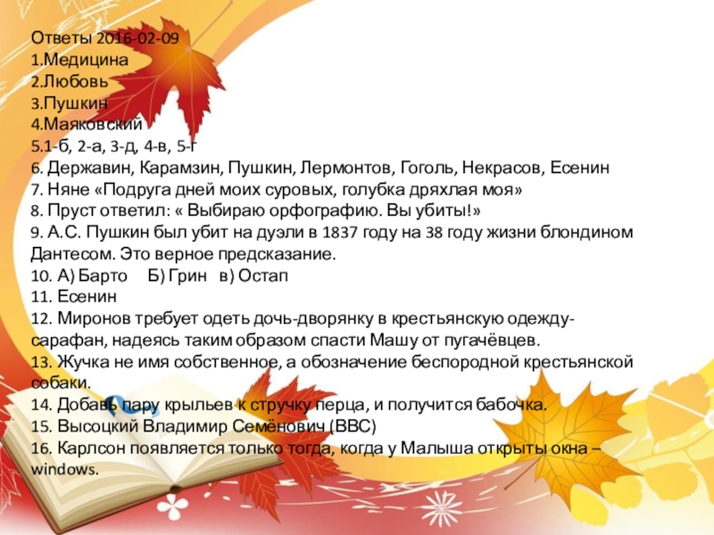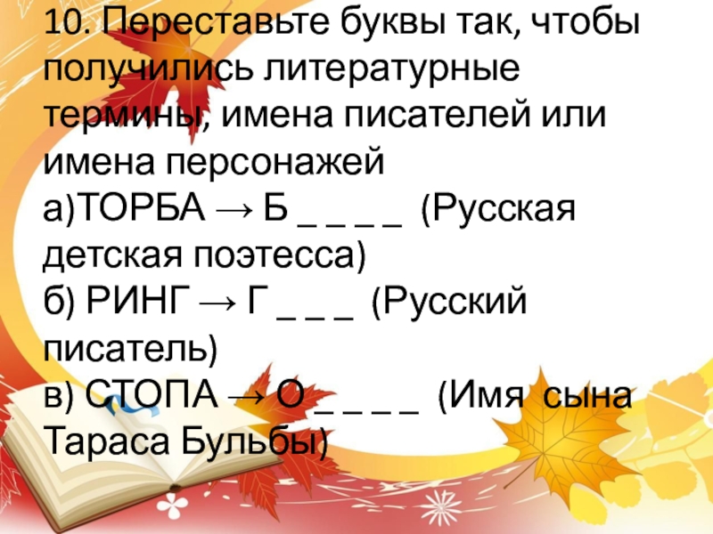 10. Переставьте буквы так, чтобы получились литературные термины, имена писателей или