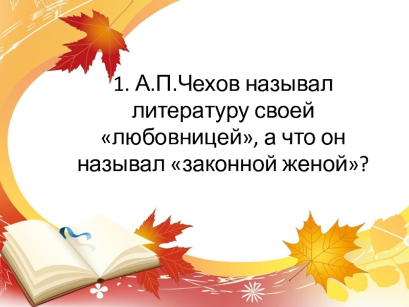 Слайд 21. А.П.Чехов называл литературу своей «любовницей», а что он называл «законной