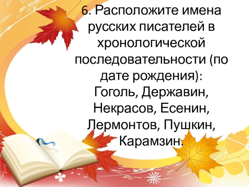 Слайд 76. Расположите имена русских писателей в хронологической последовательности (по дате рождения):