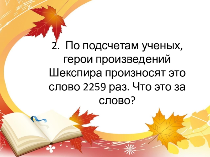 Слайд 32. По подсчетам ученых, герои произведений Шекспира произносят это слово 2259