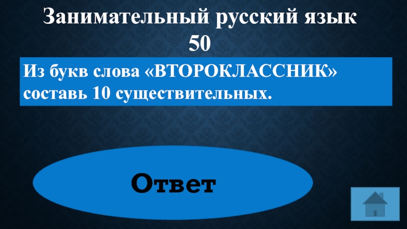 Из букв слова «ВТОРОКЛАССНИК» составь 10 существительных.