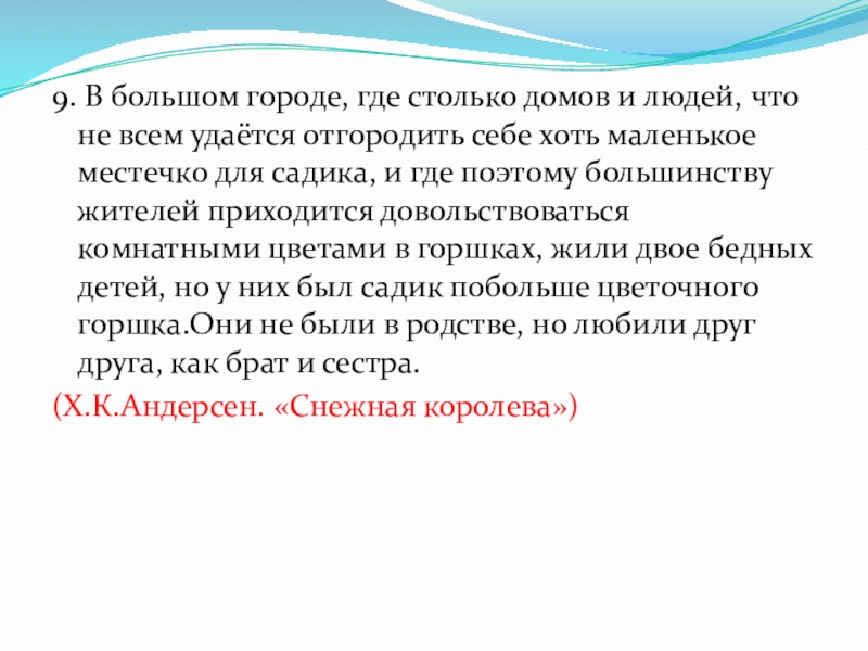 всем удаётся отгородить себе хоть маленькое местечко для садика, и где поэтому большинству жителей приходится довольствоваться комнатными цветами в горшках, жили двое бедных детей, но у них был садик побольше цветочного горшка.Они не были в родстве, но любили друг друга, как брат и сестра.