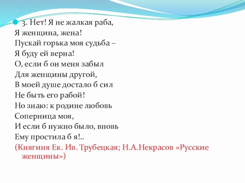 (Княгиня Ек. Ив. Трубецкая; Н.А.Некрасов «Русские женщины»)