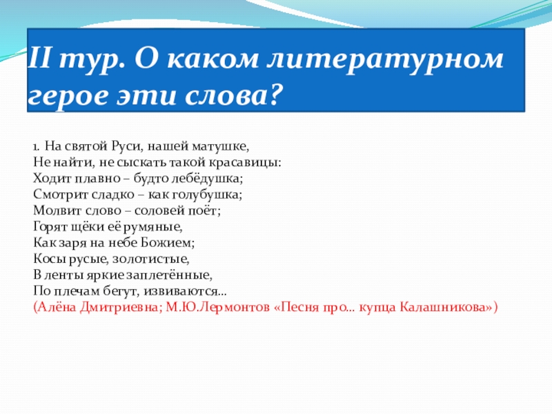 (Алёна Дмитриевна; М.Ю.Лермонтов «Песня про… купца Калашникова»)