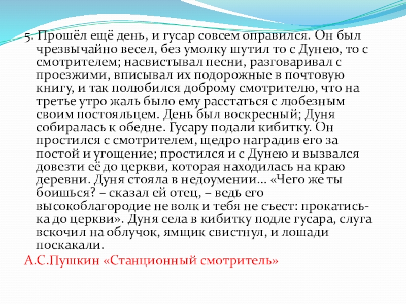Слайд 75. Прошёл ещё день, и гусар совсем оправился. Он был чрезвычайно