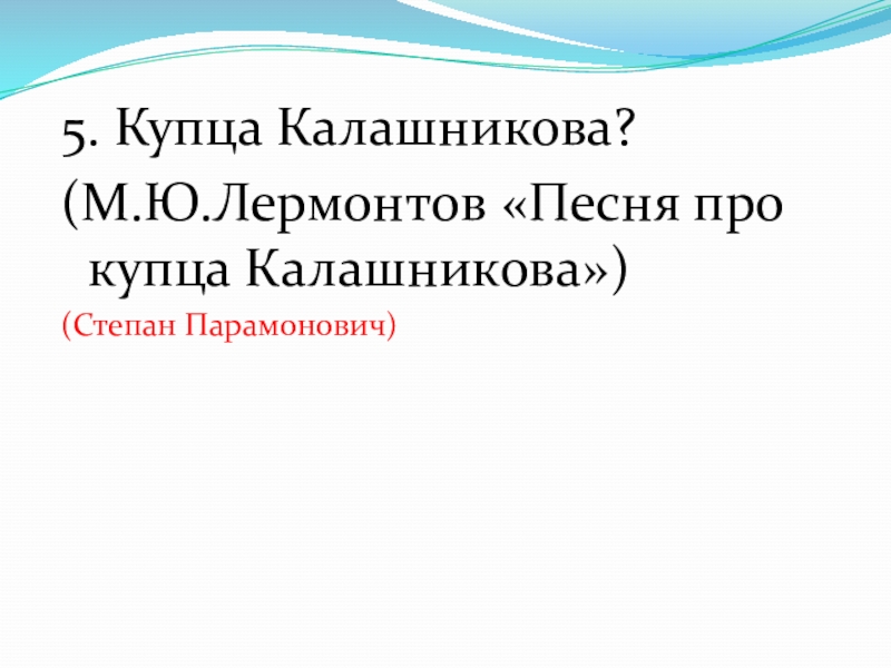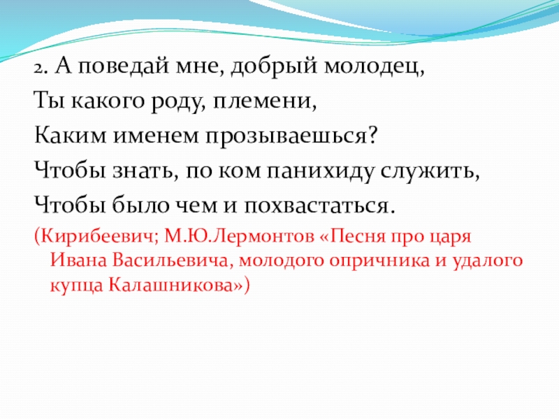 (М.Ю.Лермонтов «Песня про купца Калашникова»)