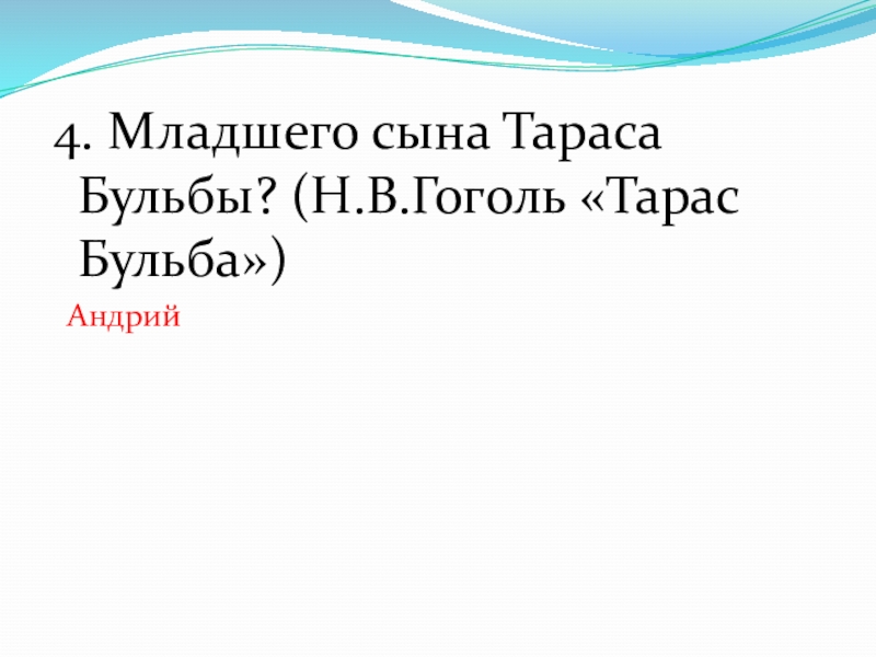 Слайд 294. Младшего сына Тараса Бульбы? (Н.В.Гоголь «Тарас Бульба»)
