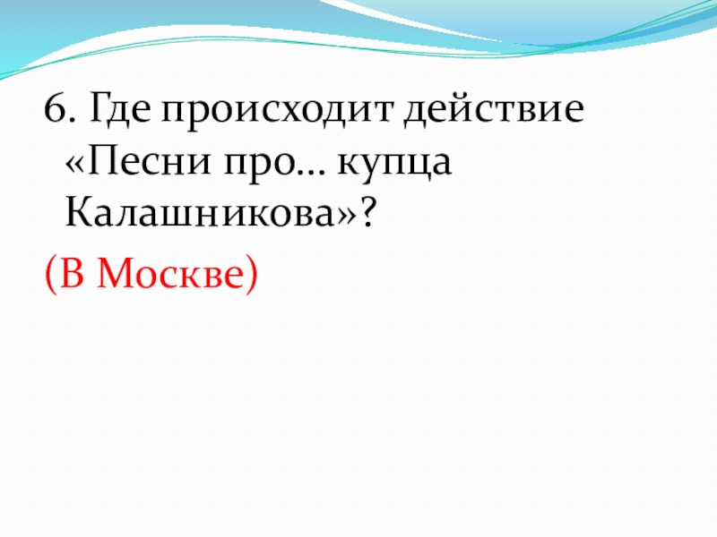 Слайд 386. Где происходит действие «Песни про… купца Калашникова»?