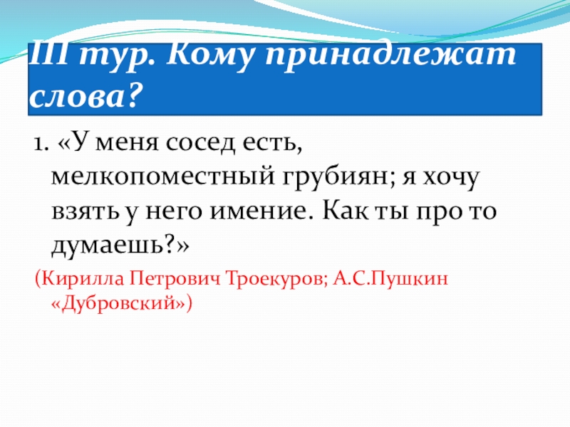 1. «У меня сосед есть, мелкопоместный грубиян;