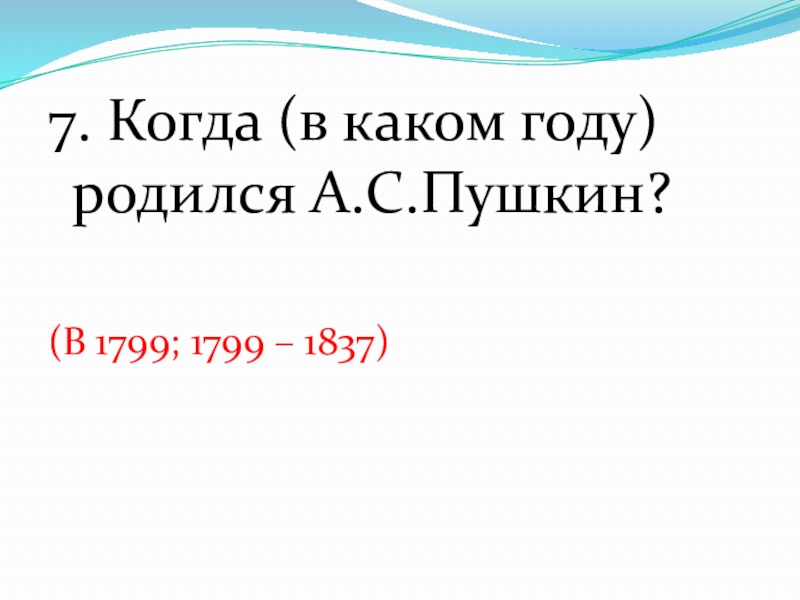 Слайд 397. Когда (в каком году) родился А.С.Пушкин?