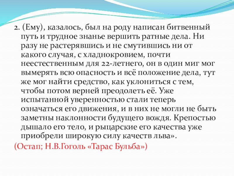 Слайд 142. (Ему), казалось, был на роду написан битвенный путь и трудное