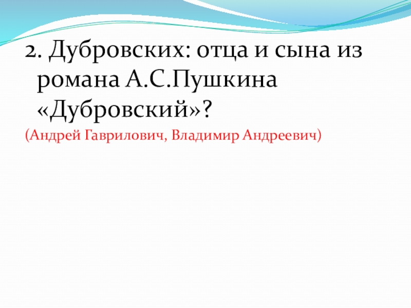 Слайд 272. Дубровских: отца и сына из романа А.С.Пушкина «Дубровский»?