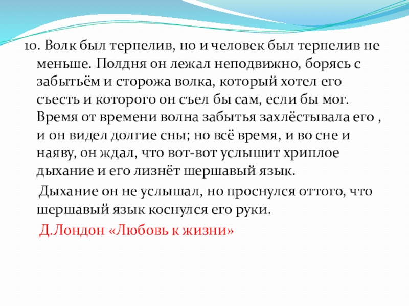 Слайд 1210. Волк был терпелив, но и человек был терпелив не меньше.