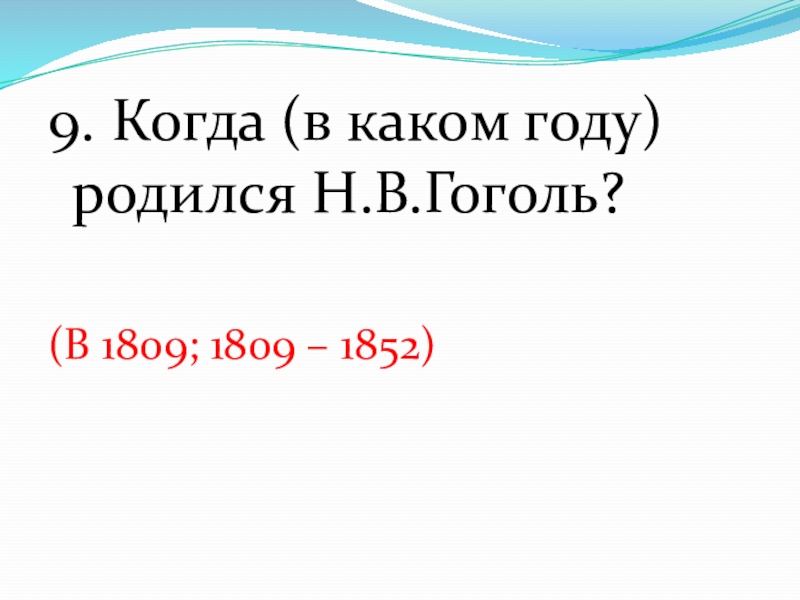 Слайд 419. Когда (в каком году) родился Н.В.Гоголь?