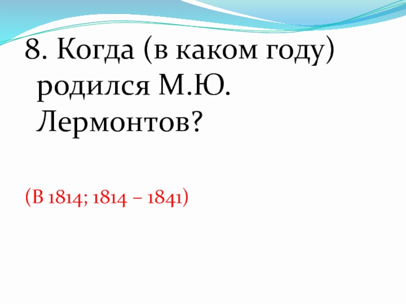 Слайд 408. Когда (в каком году) родился М.Ю.Лермонтов?
