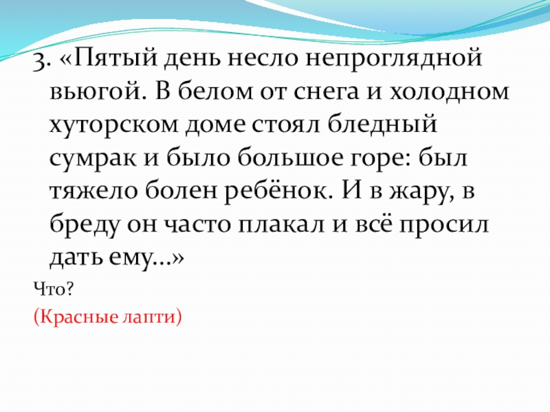 Слайд 353. «Пятый день несло непроглядной вьюгой. В белом от снега и