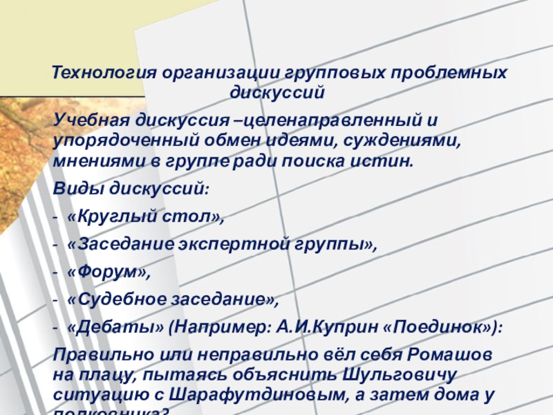 Технология организации групповых проблемных дискуссий