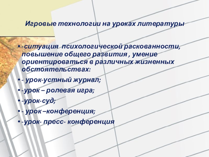 Слайд 7Игровые технологии на уроках литературы