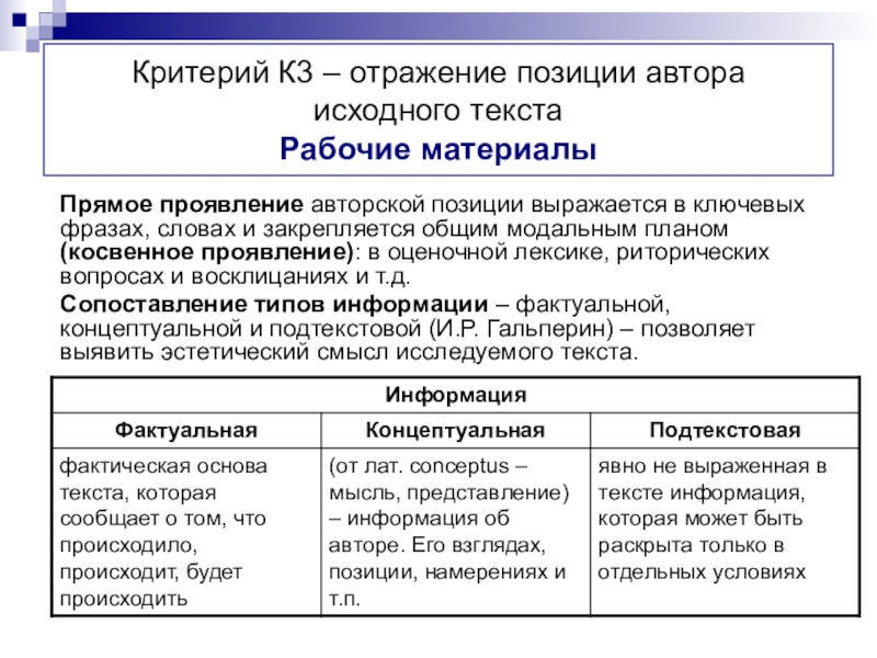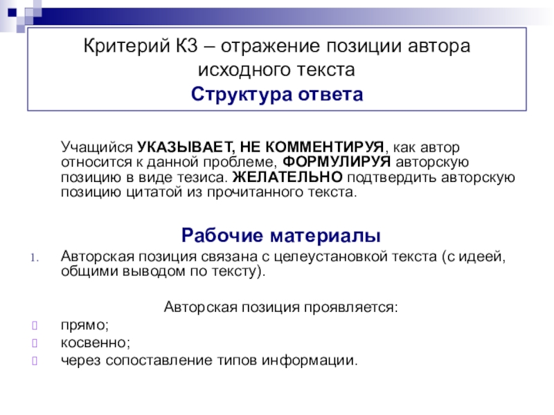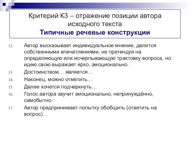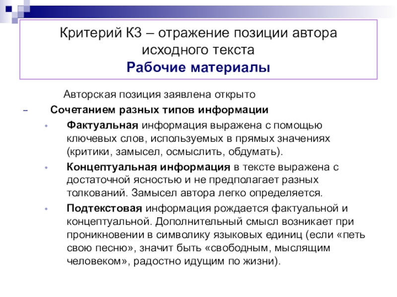 Слайд 14Критерий К3 – отражение позиции автора исходного текста